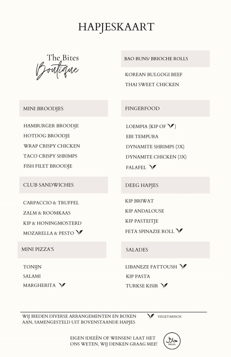 Je kiest zelf uit onze hapjeskaart die je onderaan deze pagina kan vinden